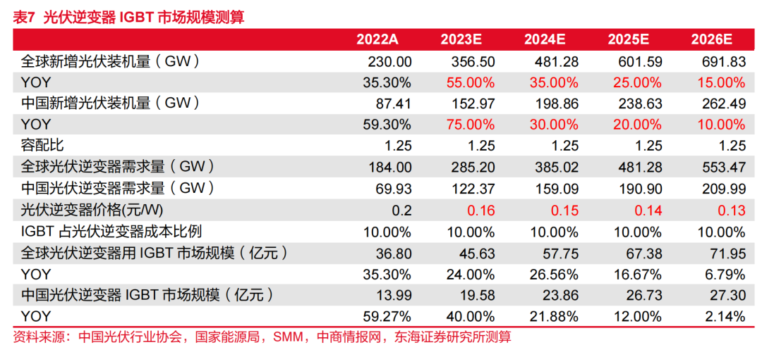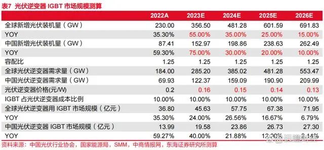 (4)根据固德威招股说明书IGBT在采购金额中占比数据,我们设定IGBT占光伏逆变器成本比例维持在10%。