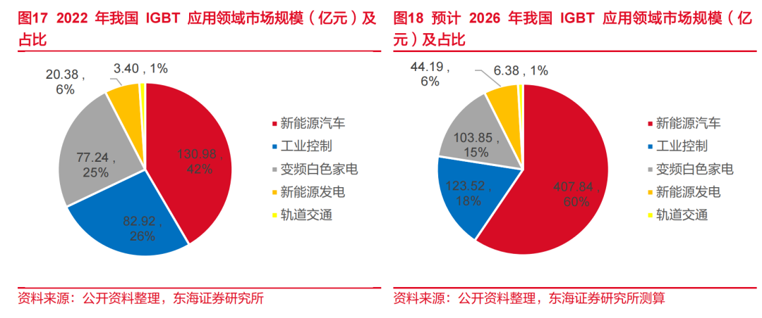 从下游占比来看,2026年预计新能源汽车、工业控制、变频白电、新能源发电、轨道交通分别为60%、18%、15%、6%以及1%。